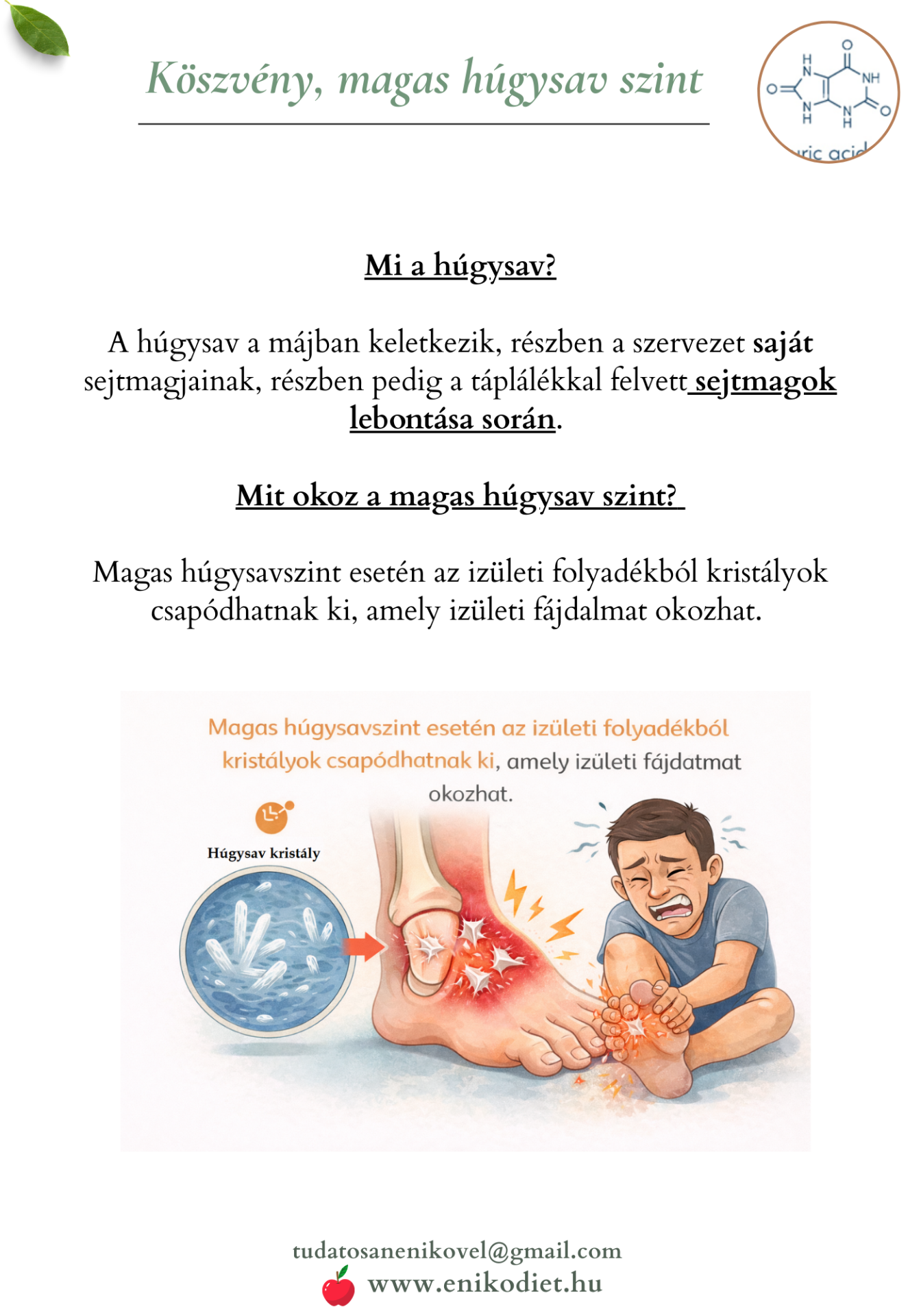 Magas húgysavszint étrendi kezelése, tudományosan, hitelesen, gyakorlati tippekkel és a gyakorlatból vett kérdésekkel.