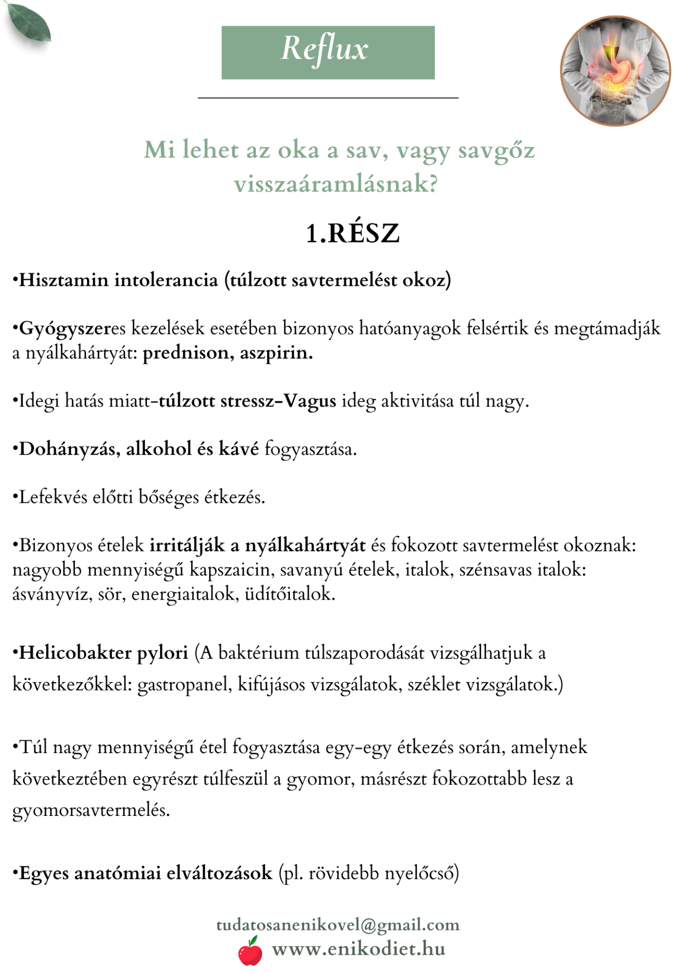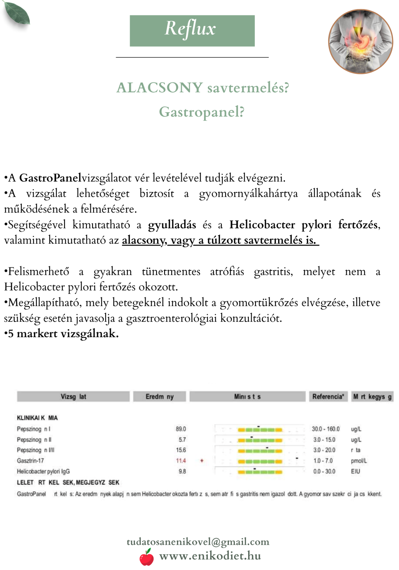 Reflux és a csökkent gyomorsavtermelés okai, diagnosztikája.